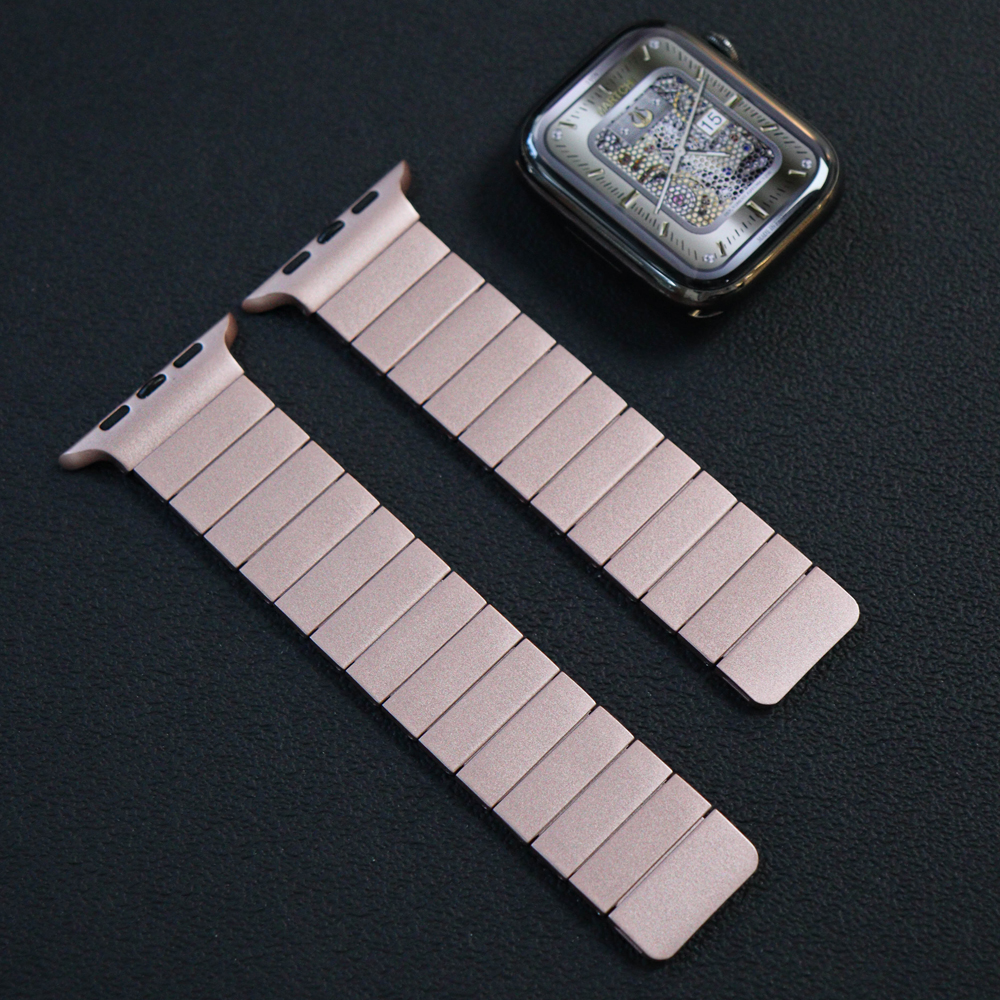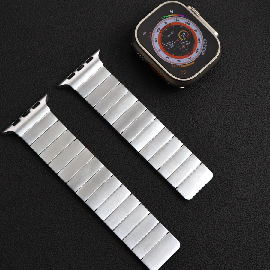 Experience effortless style with our Magnetic Stainless Steel Apple Watch Band. Meticulously crafted from premium stainless steel, this band features a secure dual-magnetic clasp system for the perfect, adjustable fit. Its sleek, minimalist design, paired with smooth, rounded edges, offers a sophisticated and timeless look that elevates your Apple Watch for any occasion.