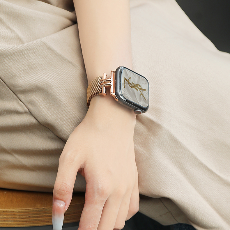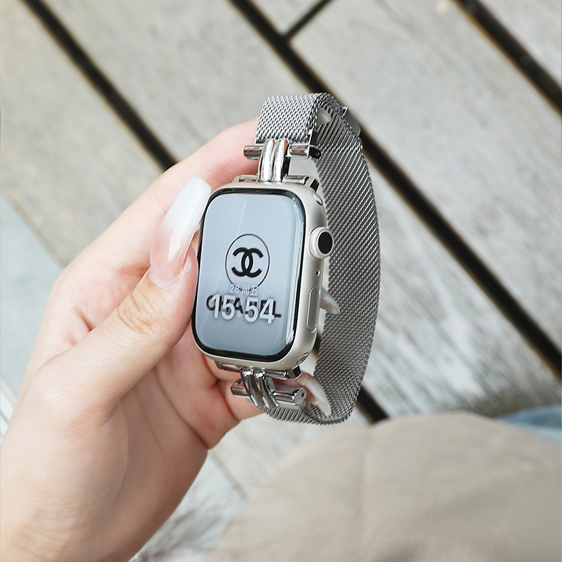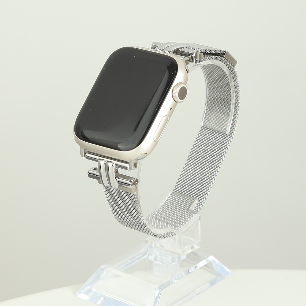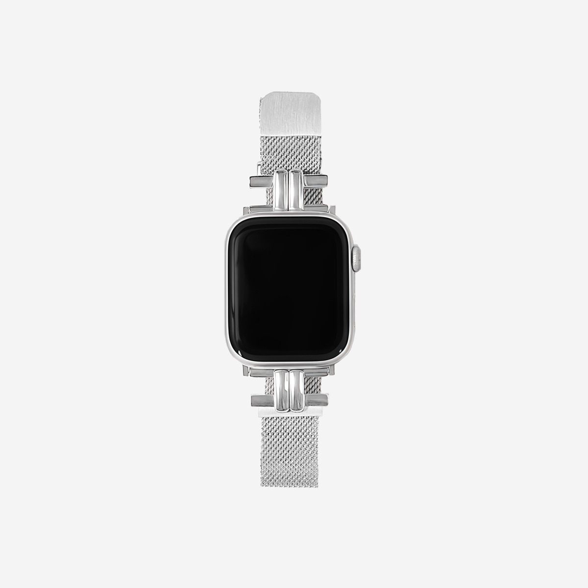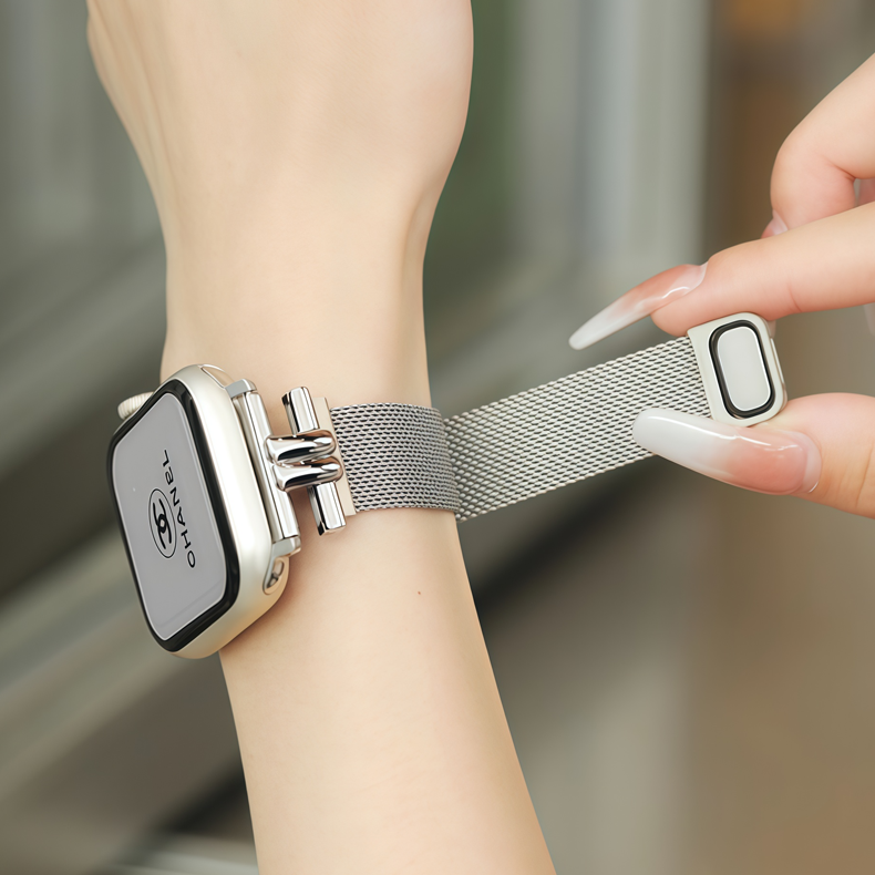 This Apple Watch band features a sleek, forged stainless steel design with a refined metal weave. The elegant metal connectors and smooth rounded edges enhance its minimalist, modern aesthetic. The magnetic clasp ensures easy wearability, making it a perfect choice for those who appreciate a classic and timeless style with a touch of contemporary elegance.