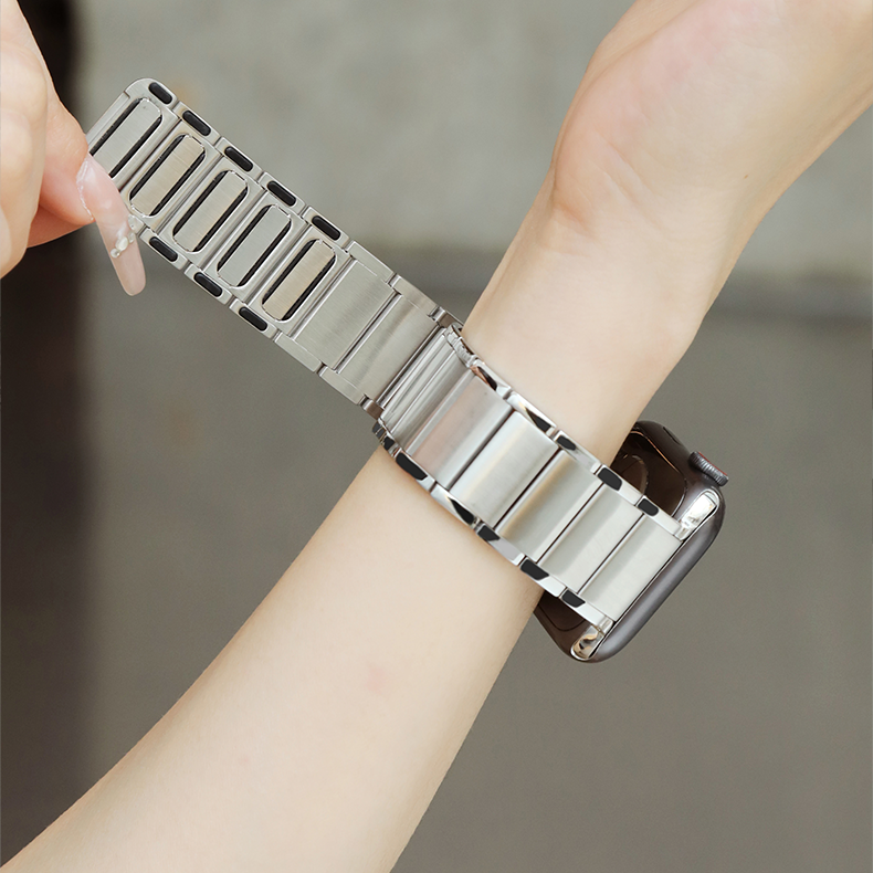 Artisan Rounded Edge Polishing: Comfort shouldn't be a compromise. Because every link in the Magnetic Stainless Steel Apple Watch Band undergoes a rigorous rounded edge polishing process, it feels incredibly smooth against the skin and won't snag on your premium knitwear or shirt cuffs.