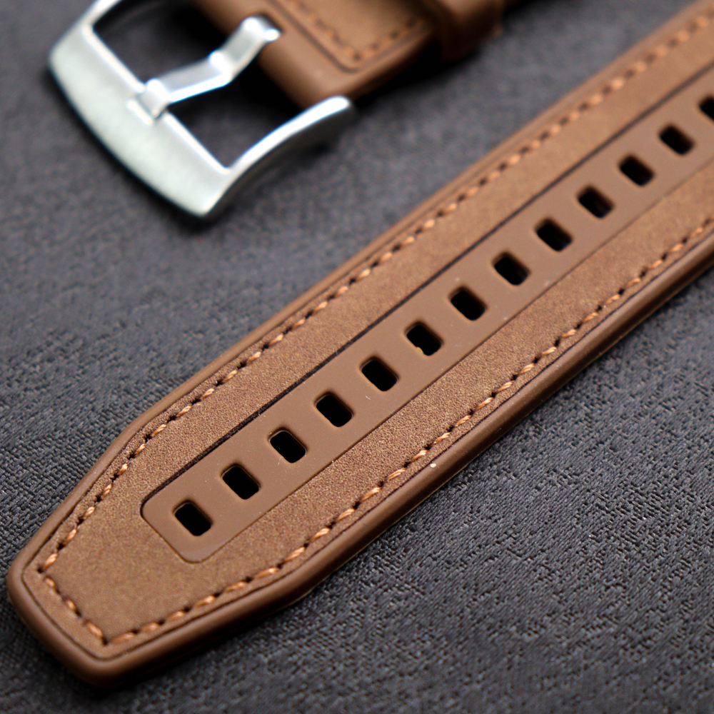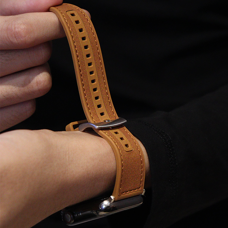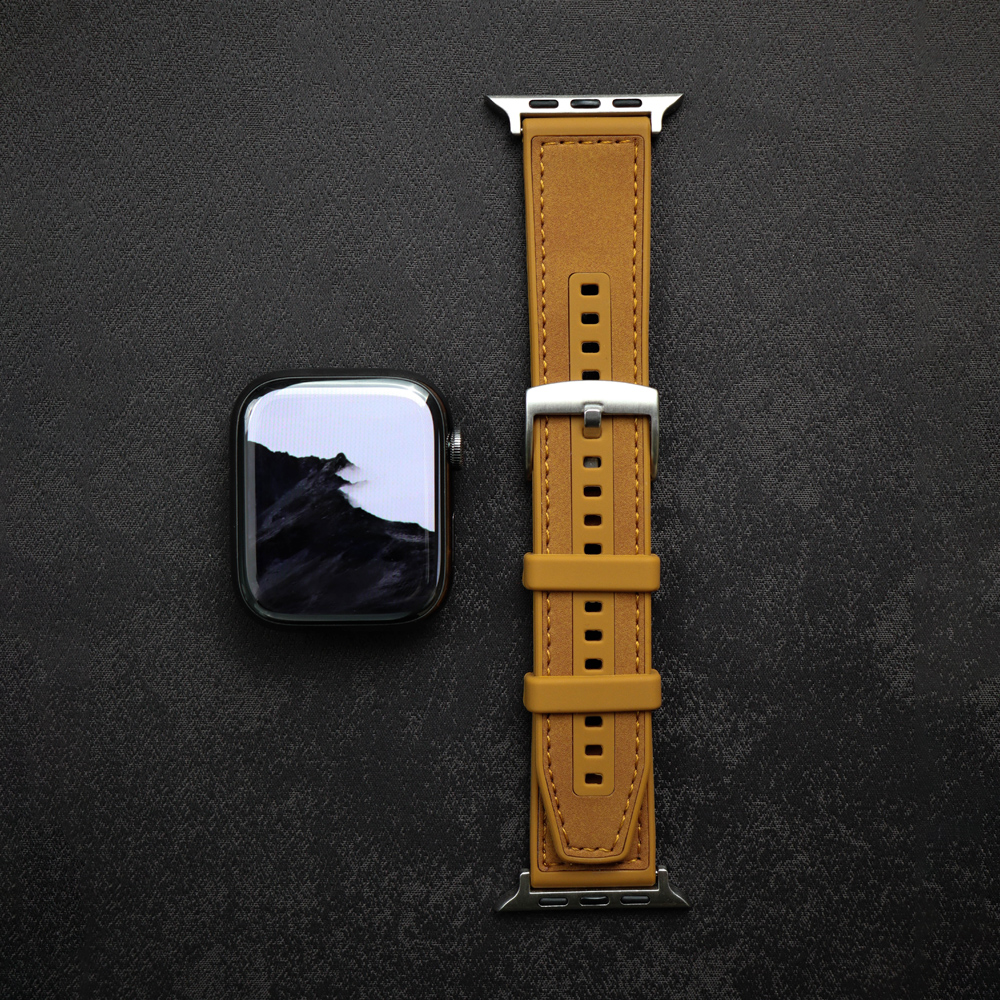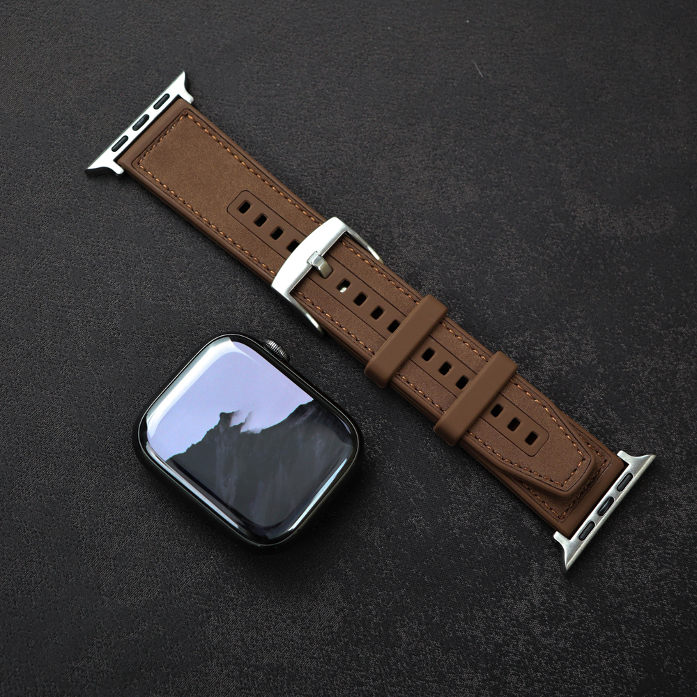 This Apple Watch band is crafted from premium dust-resistant silicone with a soft matte finish, accented by fine saddle stitching and a polished square buckle. The rounded edges enhance comfort, while the minimal design exudes effortless sophistication. A perfect choice for those who seek a niche yet modern aesthetic that balances practicality with quiet elegance.