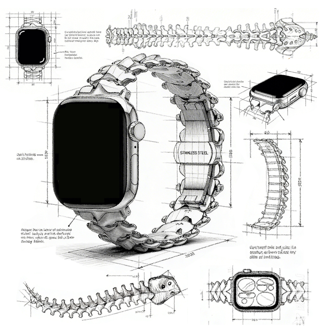Redefine your style with our signature Metal Spine Apple Watch Band. Meticulously crafted for those who demand a blend of industrial aesthetics and luxury, this band features a unique, spinal-inspired bionic structure that sets it apart from traditional link bracelets. Whether you are in the office or attending an evening event, this Metal Spine Apple Watch Band delivers a sophisticated, minimalist look that complements every outfit.