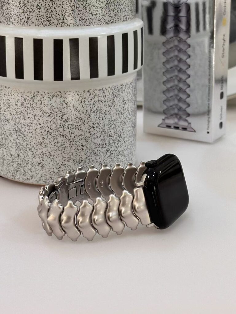 Redefine your style with our signature Metal Spine Apple Watch Band. Meticulously crafted for those who demand a blend of industrial aesthetics and luxury, this band features a unique, spinal-inspired bionic structure that sets it apart from traditional link bracelets. Whether you are in the office or attending an evening event, this Metal Spine Apple Watch Band delivers a sophisticated, minimalist look that complements every outfit.