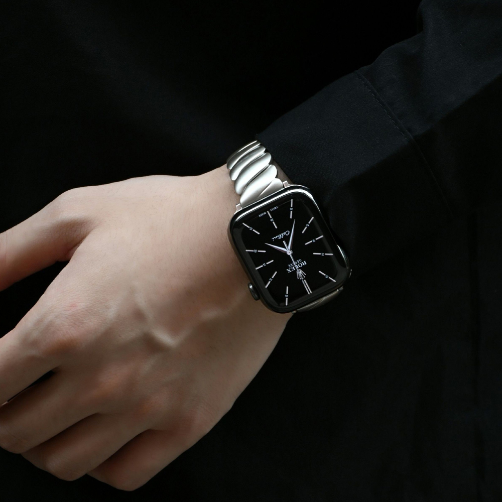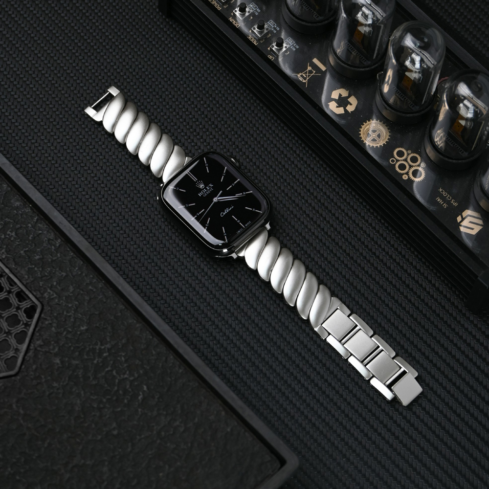 Crafted from premium stainless steel, this Apple Watch band features a smooth curved edge design, offering a sleek, modern, and youthful minimalist style.