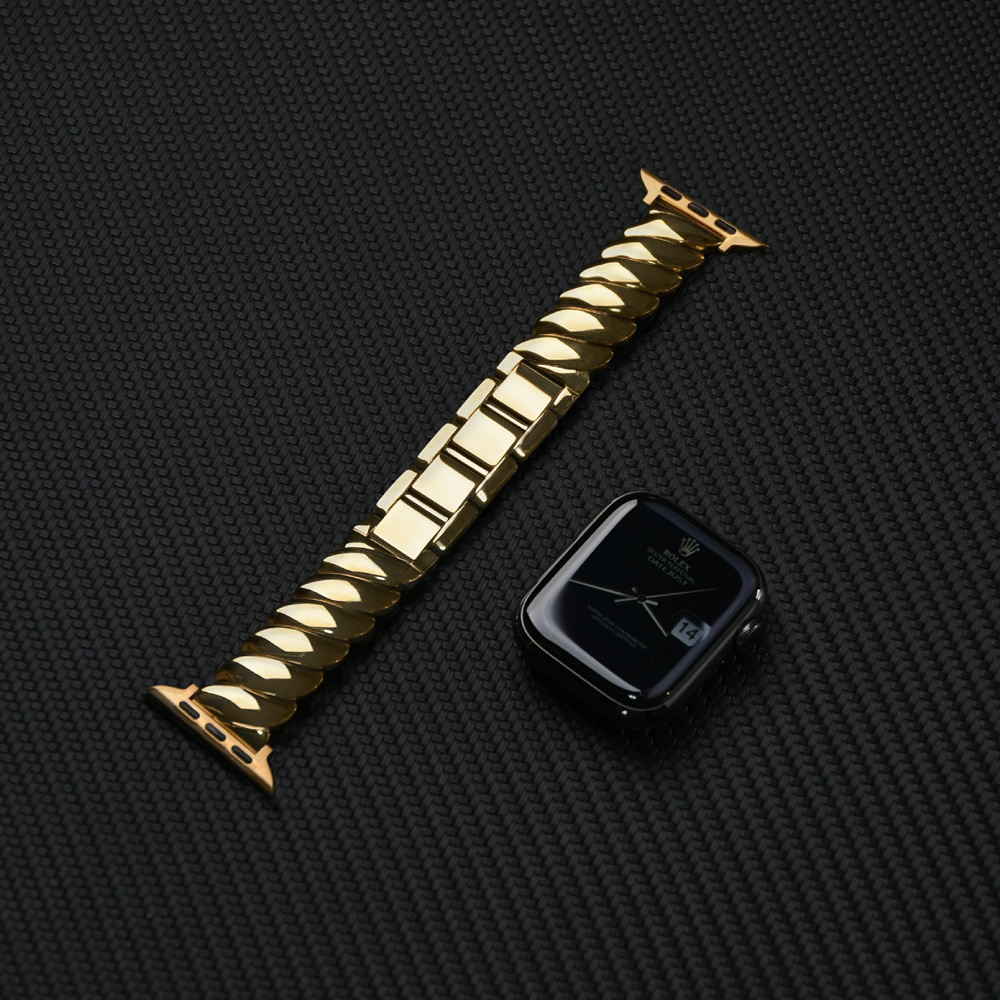 This Apple Watch band is made from high-quality stainless steel with a smooth curved-edge finish that reflects refined craftsmanship. Its minimalist silhouette and polished texture deliver a sleek, modern aesthetic that suits both casual and formal styles. Designed for those who appreciate understated elegance and a youthful, contemporary look.