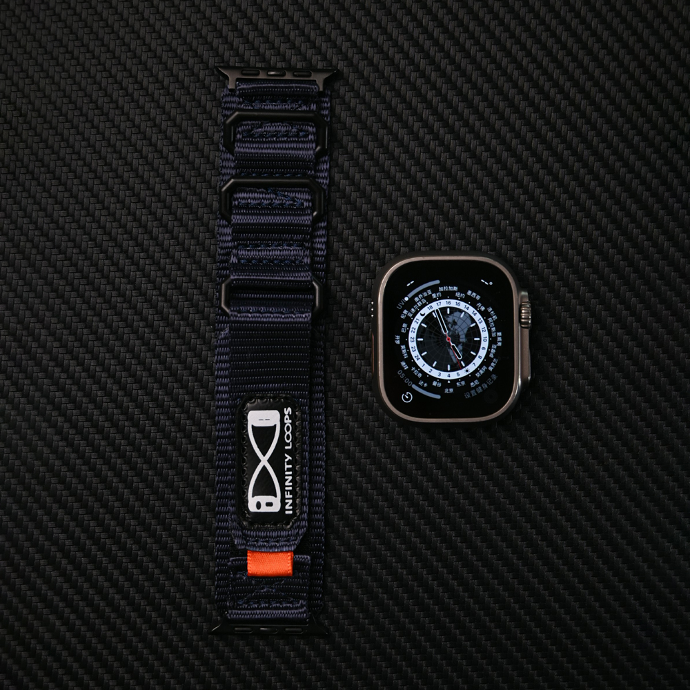 Engineered for both durability and style, this Apple Watch band is made from high-strength woven nylon paired with matte black metal hardware. The multi-ring buckle structure adds a sense of utility, while subtle contrast accents bring a touch of modern edge. Perfect for those who embrace an outdoor-inspired, minimalist lifestyle with a small-batch, niche aesthetic.