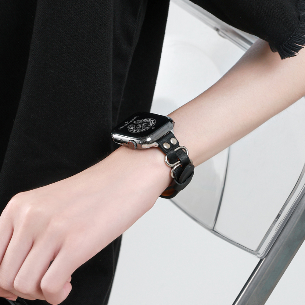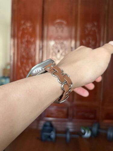 This Apple Watch band blends full-grain cowhide and polished metal, featuring a unique interwoven design with metal round studs and a square pin buckle. The smooth rounded edges and high-quality craftsmanship reflect a timeless, old money aesthetic. Perfect for those who appreciate understated elegance and refined style, this band offers a sophisticated, youthful charm.