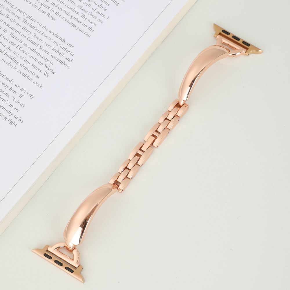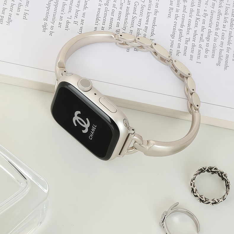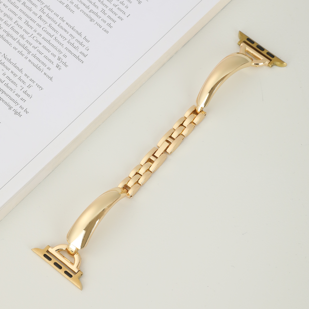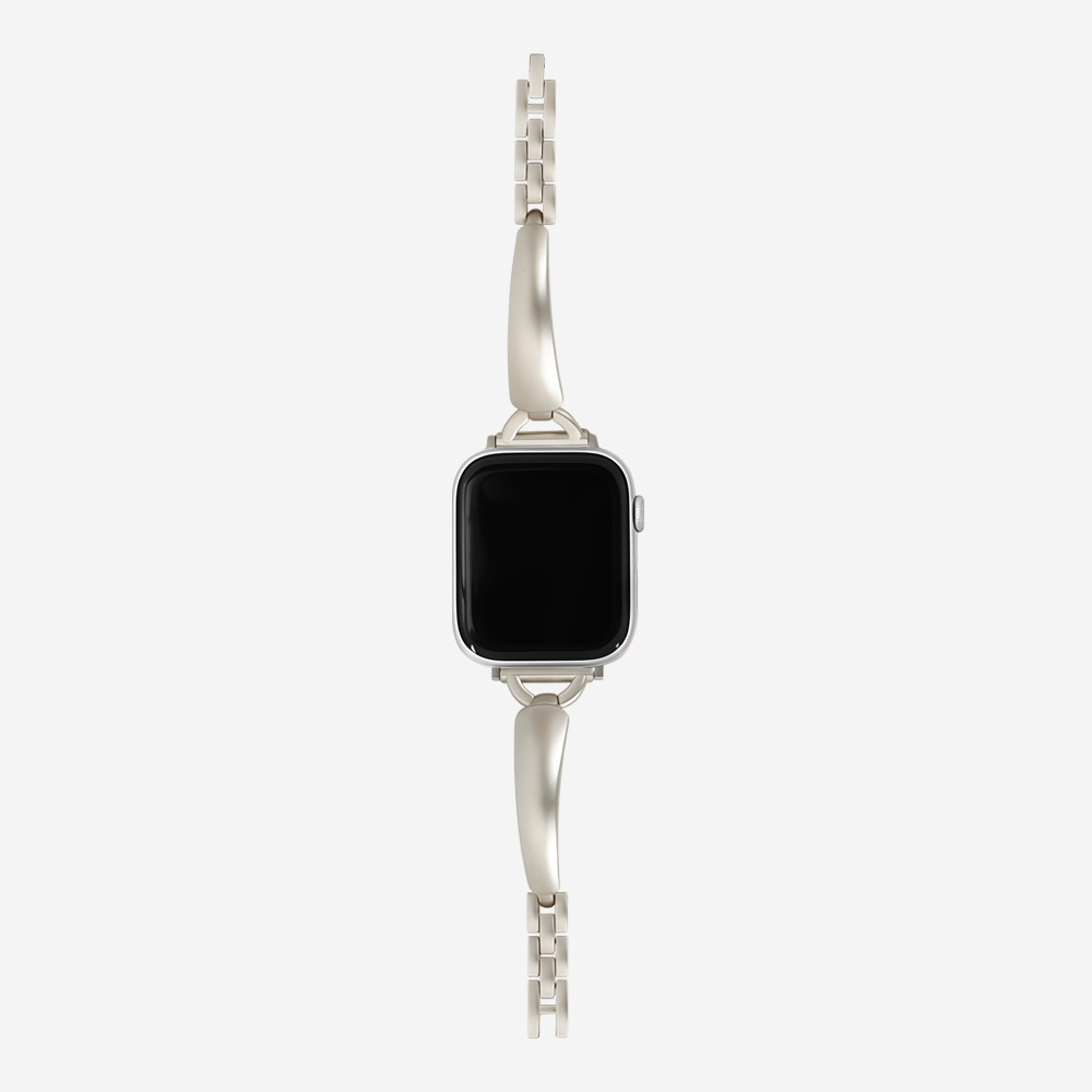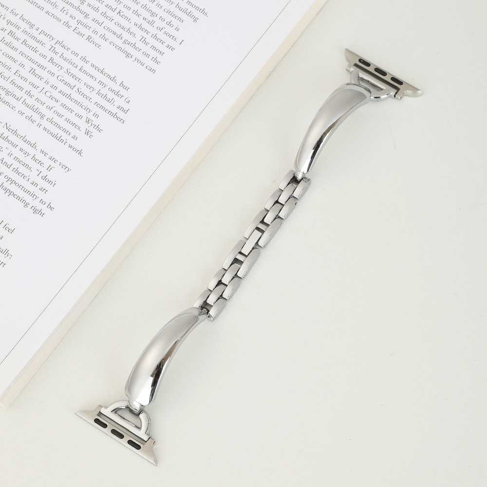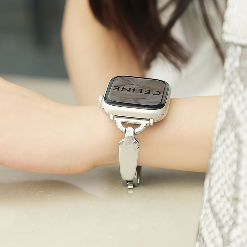 This Apple Watch band features a stylish bangle design crafted from durable alloy. The polished metal D-ring and smooth rounded edges create a sleek, minimalist aesthetic. Ideal for those who appreciate subtle sophistication, this band adds a touch of modern elegance to any look.